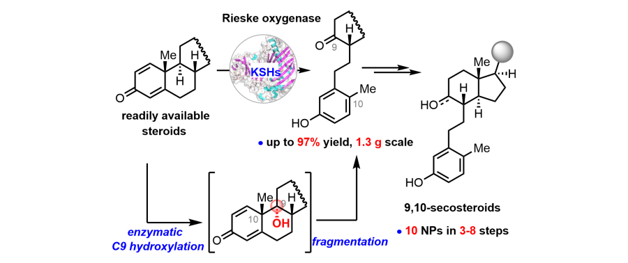Hanxin Song, Zeliang Zhang, Chunyang Cao,* Zhijun Tang,* Jinghan Gui,* and Wen Liu,* Biocatalytic Steroidal 9α-Hydroxylation and Fragmentation Enable the Concise Chemoenzymatic Synthesis of 9,10-Secosteroids. (H.S. and Z.Z. contributed equally)