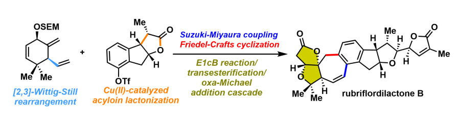 Yancheng Xie, Jiajing Bao, Yu Wang, Yi Shen, Zexuan Liang, Hailong Tian, and Jinghan Gui,* Enantioselective Total Synthesis of (-)-Rubriflordilactone B by a Bioinspired Skeletal Reorganization Approach. (Y.X. and J.B. and Y.W. contributed equally)