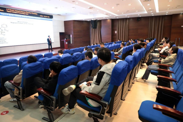 报告中,Norio Shibata教授结合自己在有机氟化学领域深耕数十年的经验,将C-F键的发展简史娓娓道来,回顾了C-F键在医药、农药方面广泛的应用场景,并展望了C-F键化学的发展的新篇章:C-F键的断裂和活化。他还系统地阐述Csp3-F以及Csp2-F键的脱氟硅烷基化反应,分享他其团队最近在环境友好氟化学方面的重要工作。报告结束后,Norio Shibata教授与有机所现场师生就相关研究问题进行了热烈的交流与讨论。本次报告增进了大家对于发展环境友好氟化学重要性和紧迫性的认识,同时也促进了中日两国氟化学领域的密切学术交流。