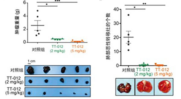 图2 MITF小分子抑制剂TT012高效抑制恶性黑色素瘤生长和转移