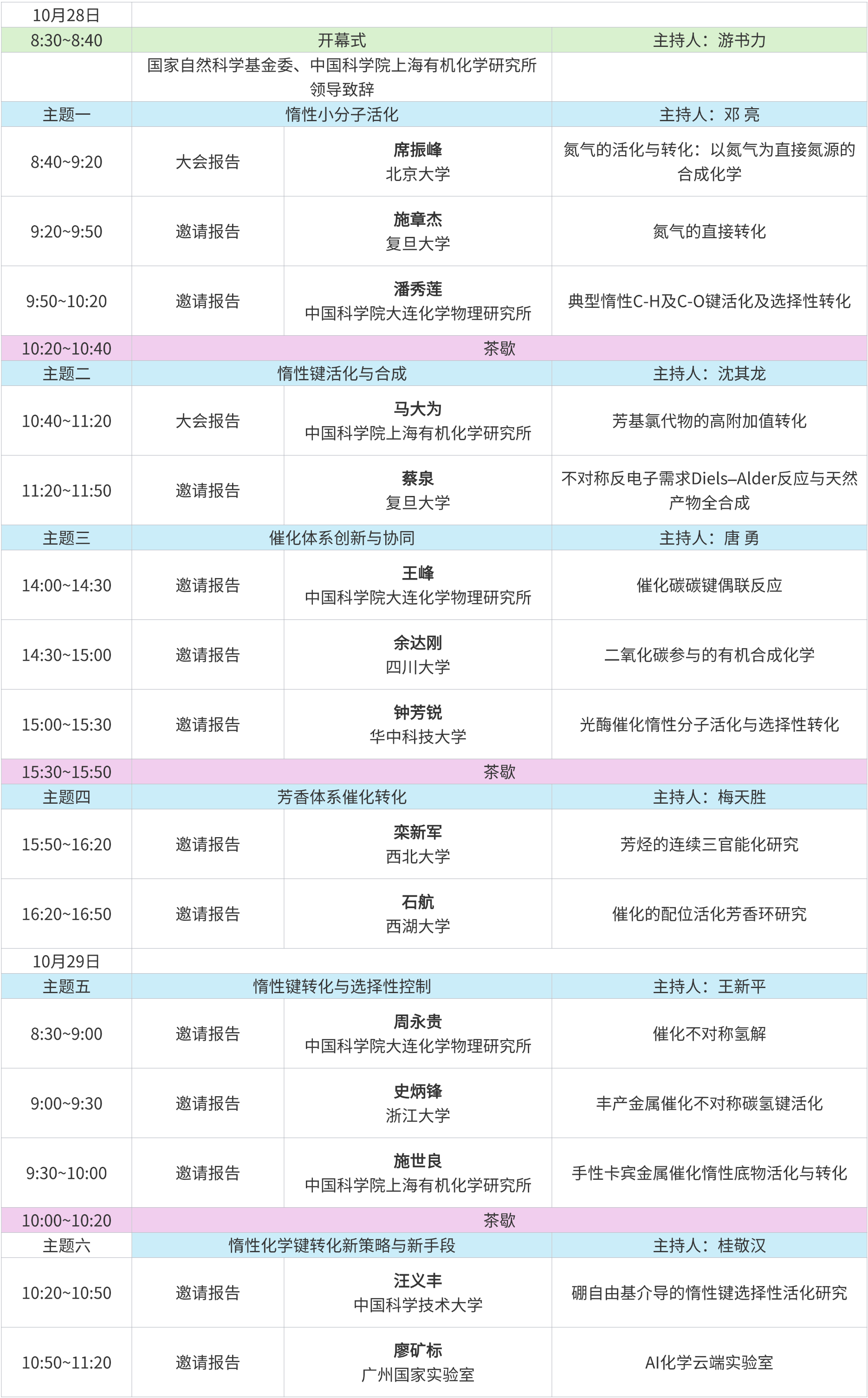 本次会议将聚集国内从事合成科学、催化科学等相关领域的专家,绕惰性化学体系活化与催化转化主题组织跨学科学术交流。共同探讨惰性化学体系化学研究的进展和未来的研究方向,推动我国合成化学跨入国际研究前列。