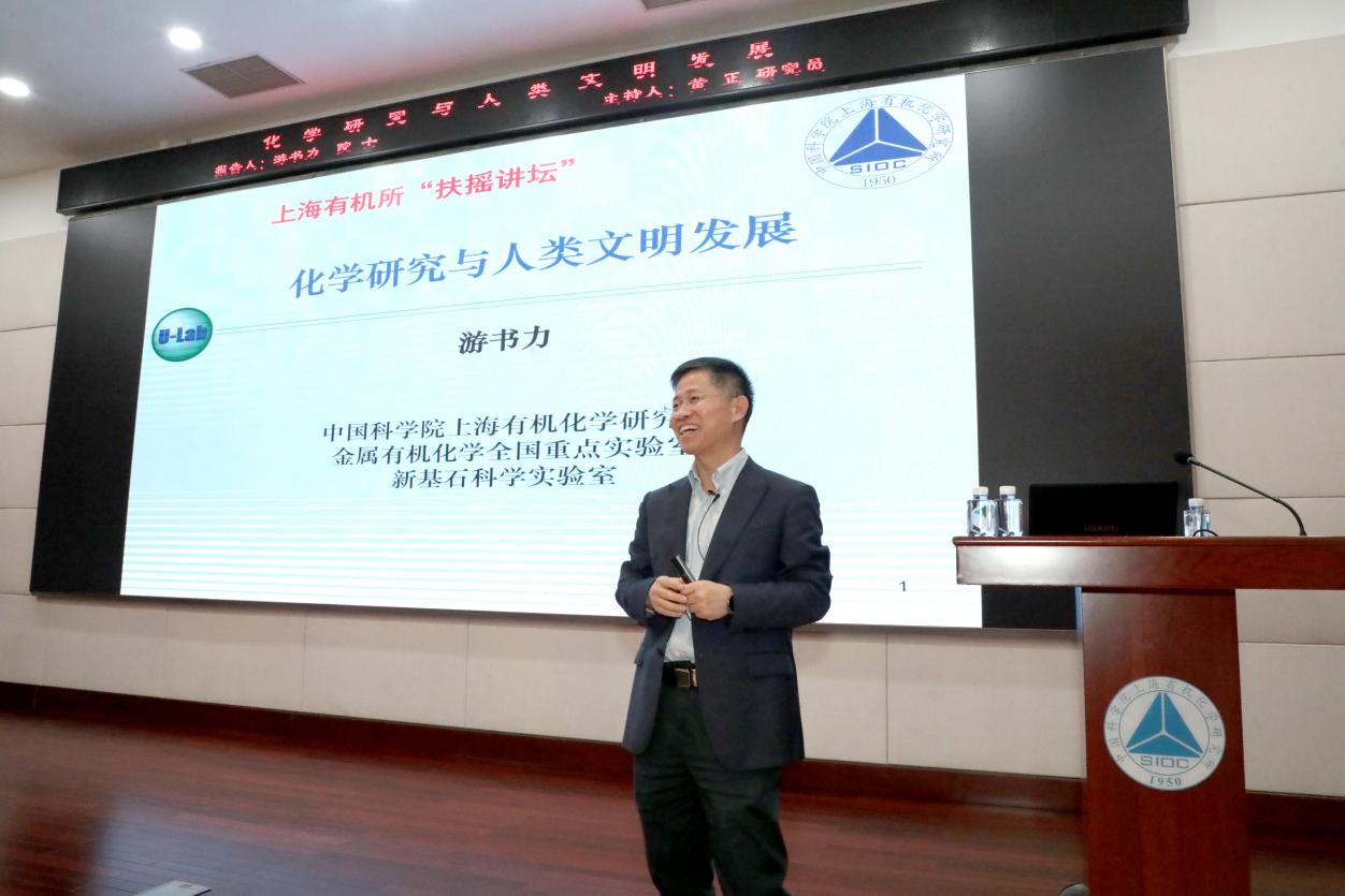 为聚焦前沿科学,弘扬学术传承,激发青年科研人才报国热情。2025年10月24日,中国科学院上海有机化学研究所扶摇讲坛第九讲在君谋楼一楼报告厅举行,本次讲坛邀请了金属有机化学全国重点实验室游书力院士作题为“化学研究与人类文明发展”专题报告,讲坛由上海有机所副所长黄正研究员主持。
