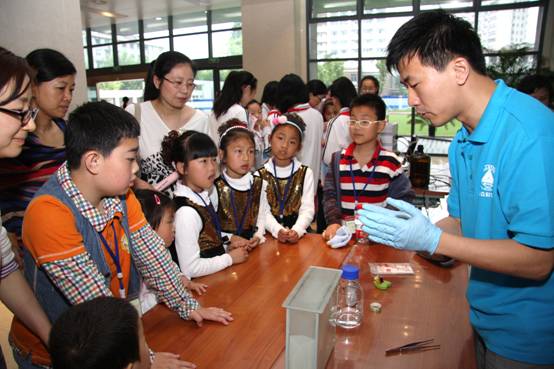 中科院上海有机所第二届“绚丽多彩的化学世界”主题科普活动于2013年5月18日在上海有机所君谋楼隆重举行,上海零陵中学师生和枫林社区居民等共约200余人参加了本次活动。