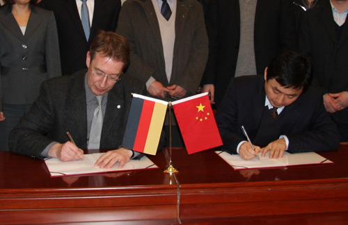 2010年3月3日,中科院上海有机所与德国拜耳公司合作协议的签字仪式在上海有机所举行。拜耳公司属下的先灵医药(Bayer Schering Pharma AG)全球药物研发部资深副总裁Hanno Wild教授,拜耳先灵医药全球药物探索中国创新中心总监马欣博士,拜耳先灵医药国际药物研发中国创新中心创新管理总监刘为民博士,上海有机所所长丁奎岭研究员,科研处赵小龙副处长及有机所合作项目组全体成员出席了签字仪式。签字仪式由项目负责人傅伟敏研究员主持。Hanno Wild副总裁和丁奎岭所长分别代表拜耳先灵医药和上海有机所在签字仪式上致辞。双方都对此合作项目给予了高度赞扬和评价,对合作双方富有诚意和成效的精诚合作表示祝贺和感谢,也对双方近十四年来的合作研究所取得的成果给予了充分的肯定。同时,双方对于未来在药物化学方面开展进一步的合作研究和在有机氟化学、金属有机化学等不同领域的合作研究充满了信心和希望。最后,双方共同祝愿上海有机所和拜耳先灵医药在未来建立起更加紧密、更加深入、更加广泛和双赢的合作。