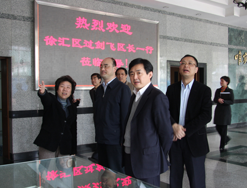 会后过剑飞区长一行在有机所领导陪同下,参观了有机所综合实验一号楼。