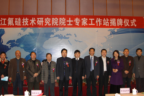 12月28日,浙江氟硅技术研究院院士专家工作站签约暨揭牌仪式隆重举行。衢州市领导赵一德、李剑飞、杜世源、赵建林、赵正良、罗卫红、陈建良等,上海有机所丁奎岭所长、陈庆云院士及其研究团队成员出席了签约暨揭牌仪式。仪式由衢州市委常委、组织部长赵建林主持。
