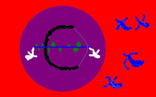 弓似字母C,代表化学,弓作为工具如同有机化学,鸽子代表和平两者组合,则意味着化学带来和谐,红色的背景象征红红火火,生机勃勃,共六只鸽子,一只鸽子可看成一双手,而一双手有十指,这样六十周年得以体现,同时双手也意味着协作。