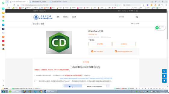 4. 工具软件—ChemDraw绘图软件下载安装。安装过程中会出现激活页面,激活码见安装指南页面,根据提示输入用户名、注册邮箱(需与前面的注册邮箱一致)、点击Activate, 继续完成安装。
