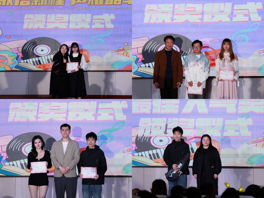 经过严格评审,最终奖项揭晓:苏雨杨荣获一等奖;蔡东悦、王叶荣获二等奖;姚依慧、李飏霄荣获三等奖。经过观众投票,李飏霄还获得了最佳人气奖。与会领导依次为获奖选手颁发荣誉证书与奖品,现场掌声不断,为每一位逐梦舞台的青年学子喝彩。