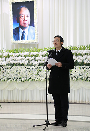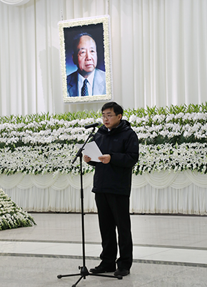 中国科学院上海有机化学研究所所长、袁承业先生治丧委员会主任丁奎岭院士在告别仪式介绍袁承业先生生平。
