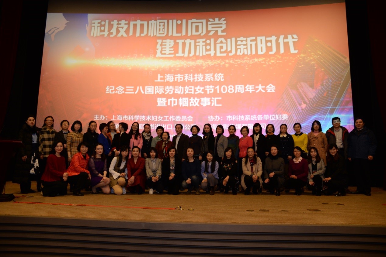 3月6日下午, “科技巾帼心向党 建功科创新时代”上海市科技系统纪念三八国际劳动妇女节108周年大会在上海科技影城举行。上海市科技党委副书记陈龙、中科院院士叶叔华、上海市妇联办公室主任潘卫红,以及上海市科技妇工委班子全体成员、各单位妇女工作分管领导、各单位妇女组织负责人和优秀科技女性代表共计300余人参加了此次大会。大会对2017年度科技系统妇女工作条线所获先进个人、集体进行了表彰。