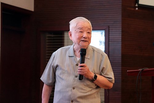 在热烈的掌声中,陆先生上台致谢,他回顾了自己60多年来的科研历程,讲述了自己与老师王葆仁先生、启蒙导师汪猷先生、老师兼挚友山本明夫先生的感人故事。陆先生认为做事要一步一个脚印,而且要严谨,所以一直用“战战兢兢、如临深渊、如履薄冰”来警戒自己。在指导研究生时,总是秉持将“要我做”变成“我要做”,希望学生在研究中不是只注意最后的结果,更应该观察反应的现象,要用敏锐的眼光抓住一切新现象、不错过“偶然性”。他将所取得的成就归功于党和国家的培养和各级领导的关怀,以及同事、学生与家人的支持和帮助。