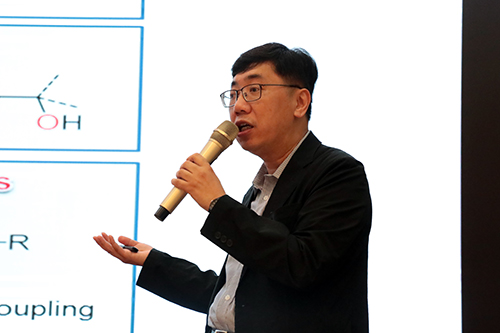 所学术委员会主任林国强院士主持了学术报告。香港大学支志明院士、有机所马大为研究员、武汉大学雷爱文教授分别作了题为“Practical Iron Catalyzed Organic Transformations”、“发展高效方法,提高合成价值”、“氧化交叉偶联反应和机理研究”的精彩学术报告。林国强院士强调我们要以陆熙炎先生为榜样,传承有机所的优良传统,继承有机所的优良学风,并表达了对陆先生90华诞的诚挚祝福。