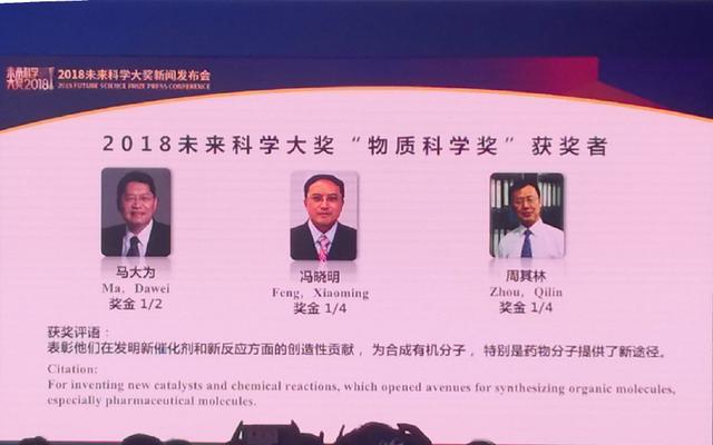 9月8日,未来科学大奖科学委员会公布了2018年未来科学大奖获奖人名单。上海有机所马大为研究员与南开大学周其林院士、四川大学冯小明院士三位科学家共同获得“物质科学奖”,以表彰他们在发明新催化剂和新反应方面的创造性贡献,为合成有机分子,特别是药物分子提供了新途径。