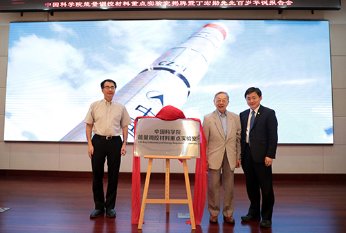 在热烈的掌声中,戴立信、丁奎岭、丁抗共同为中国科学院能量调控材料重点实验室揭牌,标志着该实验室的正式成立。
