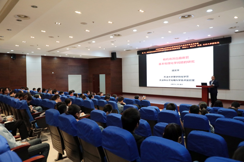11月3日,天津大学胡文平教授应邀到上海有机所作交叉学科讲座,在君谋楼报告厅做了主题为“有机场效应材料与器件基本物理化学问题的研究”的精彩报告。上海有机所所长丁奎岭院士主持了本次讲座,并为胡文平教授颁发了“上海有机所交叉学科科学讲座”证书,全所一百余名科研人员和学生参加了此次学术活动。