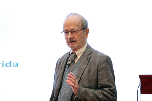 在热烈的掌声中,陈先生上台致谢,他简要回顾了自己70年来的人生、科研历程。作为一个农民的孩子,凭借机遇和努力到今天,他谦虚地称自己只是我国氟化学工作者中普通的一员,或者说是一个老兵。祖国的哺育和党的培养,为生在旧社会,长在新中国的陈先生提供了良好的学习和研究条件。小学、中学,特别是北京大学的曾昭伦、邢其毅、唐敖庆、徐光宪、蒋明谦等先生的基础和开拓式的培养令他受益永久;留学苏联导师Knunyants院士和Gambaryan博士给予的指导和鞭策,他永记心中。回国后近60年的科研生涯,与有机所的黄耀曾、黄维垣、蒋锡夔等一百多位同仁与研究生一起攻坚克难,共同学习进步,取得成绩和荣誉都应该属于有机所这个伟大的集体。“有机所永远是我的家,这是我生活的几十年里最大的体会,也是我幸福的源泉”。他祝愿有机所这个伟大集体更加繁荣昌盛,取得更优异的成绩。