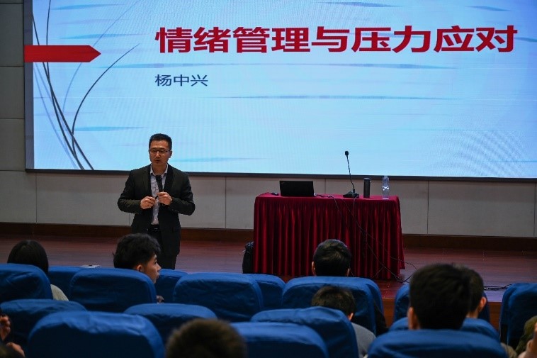 杨中兴开篇阐述欢乐、愤怒、悲伤、恐惧是人类的四种基本情绪,无论是正面还是负面的情绪都是人类情绪重要的组成部分,在日常的生活中,我们需要运用一些正确的方式方法来识别并接受自己的情绪。负面的情绪是压力产生的一个重要原因,适当的压力对于个人工作是有积极作用的,激发个人潜能,但是压力管理失控会影响学习积极性,降低工作效率。在讲座的过程中,杨中兴用生动的案例向大家详细展示了压力应对的方法,如正确识别压力信号、养成良好生活习惯、进行积极的自我暗示以及从积极的角度看问题等,通过学习提高承担压力的能力和学会减缓压力的方法。直面压力,成为“情绪”的主人,杨中兴用诙谐幽默的语言,深入浅出的方式给同学们带来一堂干活满满情绪管理与压力应对课。