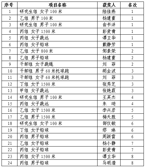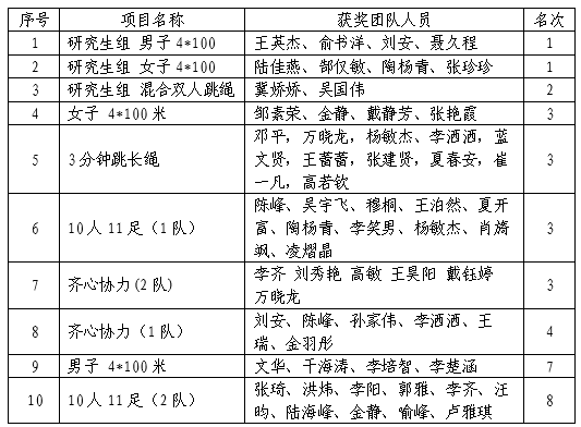 本届运动会共设领导干部组、职工组和研究生组三个组别,参赛项目包括100米、400米、跳远、铅球等39个个人竞赛项目;4×100米接力等5个集体项目;还有快乐同心球、齐心协力、10人11足、3分钟集体跳长绳、足球射门、团体篮球接力等“科技梦·我率先”全民健身嘉年华项目。上海有机所90余名运动员共参与了27个个人竞赛项目及全部集体项目、嘉年华项目的角逐。