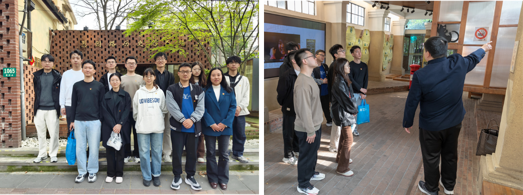 在愚园路历史名人墙前,青年们集体瞻仰了钱学森、黄炎培、瞿秋白等先贤事迹。当看到钱学森冲破重重阻挠毅然归国的史料时,现场一片肃静。“五年归国路,十年两弹成”,这背后是何等深厚的家国情怀和使命担当!走进钱学森科学家精神展示馆,青年们系统学习了钱学森“爱国、奉献、求真、创新”的精神内核。从手稿笔记到书信便条,从科学著作到日常用品,每一件展品都讲述着这位科学巨匠的严谨与赤诚。最令青年们动容的,是参观钱学森旧居——岐山村。这幢不起眼的小楼,是钱学森归国后的住所。正是在这里,他夜以继日地为新中国航天事业擘画蓝图。青年们缓步穿行于房间,仿佛能看到当年那盏深夜不熄的灯。感受到那份“我的事业在中国”的赤子之心。