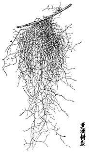 2.双色树发的地衣体悬垂型,多次分枝近等粗,体长5-10cm。全体具两种色泽,灰绿色为初期的嫩枝色泽,老后则呈赭褐色。有时基部呈褐黑色,枝尖呈灰绿色。枝上端具芽堆,呈颗粒状。 3.树发的地衣体悬垂型,细丝状,多次分枝,体长15-30cm,主枝粗0.5mm,小枝粗0.1mm,圆柱状,基部黄褐色、赭褐色,枝部的中上部呈灰绿色、石青色,枝顶端逐渐窄细,呈头状,有时扭曲;无假杯点,有时有白色粉芽;髓部白色,疏松,遇5%-10%氢氧化钾溶液微呈红色。 4.沟树发 地衣体灌丛状,近直立,高5-10cm。枝体基部明显扁平,而顶端则为圆柱形,有显著纵条沟;枝表灰白色、灰褐色,顶端黑褐色或暗褐色,平滑,无粉芽和假杯点。子囊盘顶部侧生,圆盘状,直径3-8mm。盘面淡褐色,有灰白色粉霜,缘部有缘毛。 |