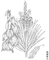 凤尾丝兰常绿木本植物。具短茎或高达5m的茎,常分枝。叶坚硬,挺直,条状被针形,长40-80cm或更长,宽4-6cm,长渐尖,先端坚硬成刺状,边缘幼时具少数疏离的齿,老时全缘,稀具分离的细纤维。圆锥花序长1-1.5m,通常无毛;花下垂,白色至淡黄白色,先端常带紫红色;花被片6,卵状菱形,长4-5.5cm,宽1.5-2cm;柱头3裂。果实倒卵状长圆形。花期10-11月。 |