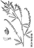 化合物成分:: 香豆精(coumarin),尿囊酸(allantoic acid),尿囊素(allantoin),双香豆酚(dicoumarol),伞形花内酯(umbelliferone),苯丙氨酸(phenylalanine),邻香豆酰葡萄糖甙(o-coumaroylglucoside),草木犀酸(meliloticacid),顺香豆酰葡萄糖甙(cis-coumarinoylglucoside)和橙皮甙(hesperidin)等。